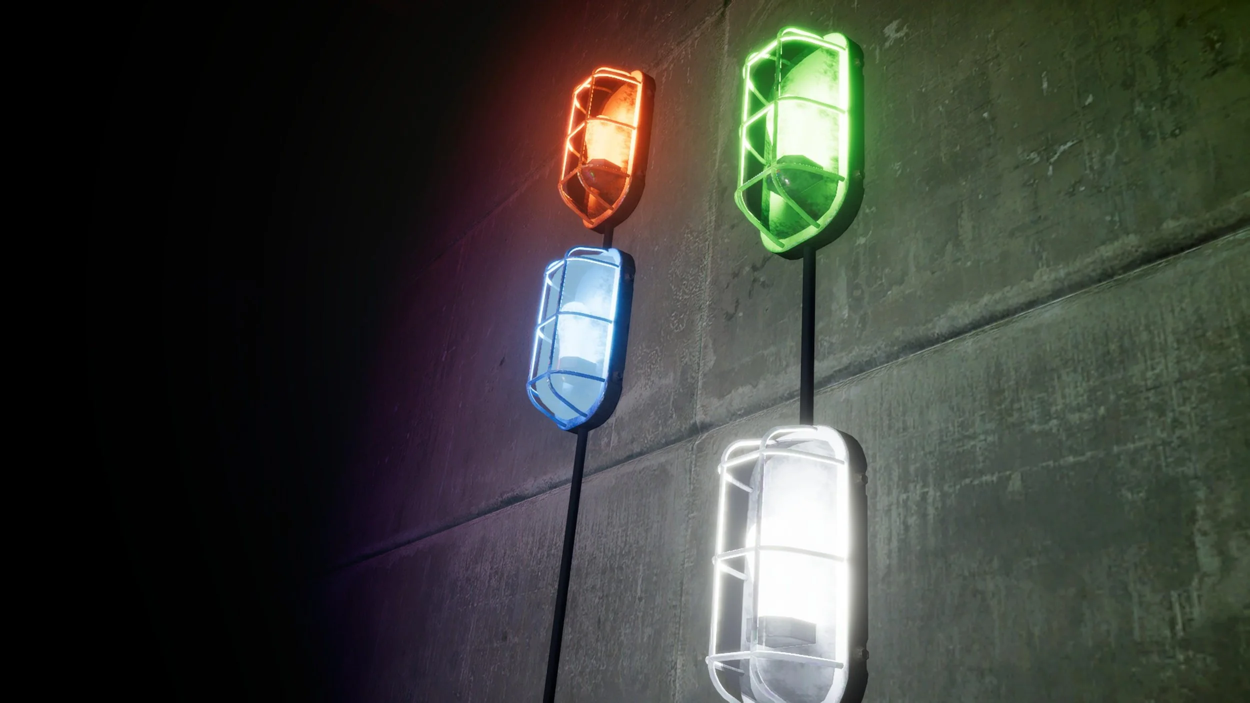 Industrial Lights - Industrial lights designed to brighten and illuminate your base. These versatile fixtures can be mounted on floors, ceilings, or walls to suit your setup. Available in Red, Green, Blue, and White variations, allowing you to customize both the lighting and atmosphere of your space.